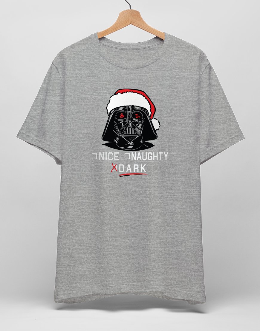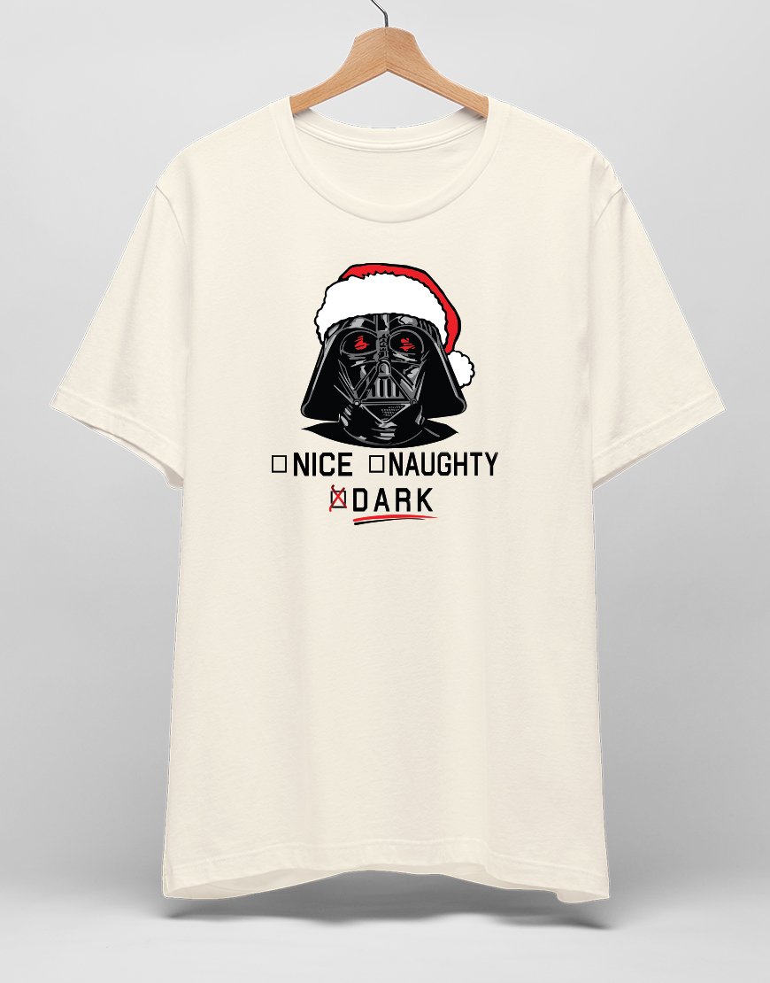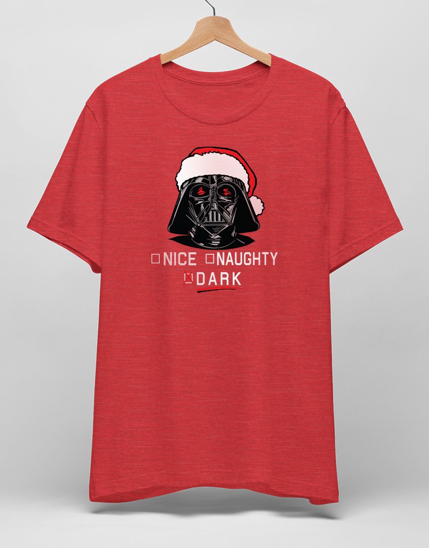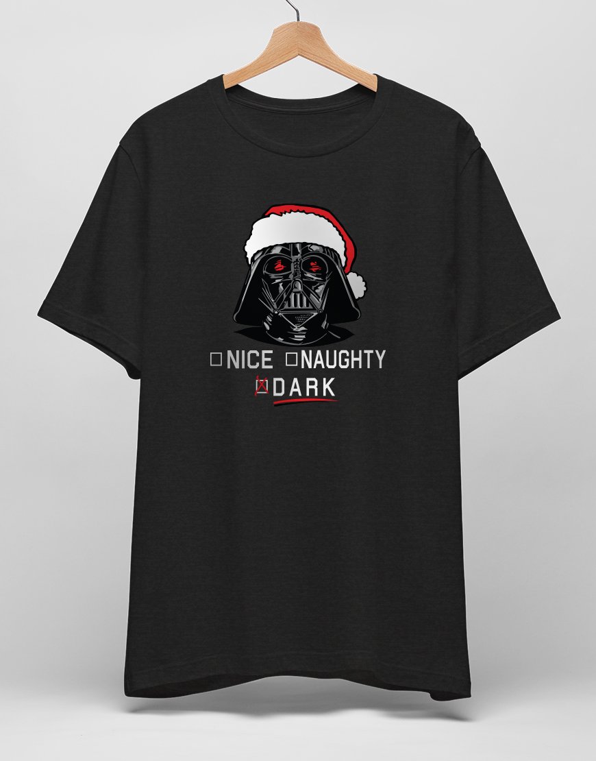 Darth Vader puts his own spin on the holiday list — with a Santa hat and a checkmark next to “DARK.” This tee is perfect for Star Wars fans who embrace their inner Sith Lord during the festive season. Nice? Naughty? Nah, just Dark.